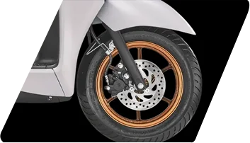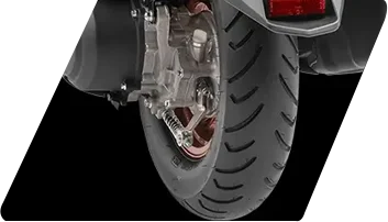 The Fascino’s 110mm wide rear tyre enhances ride comfort, boosting confidence and safety.
