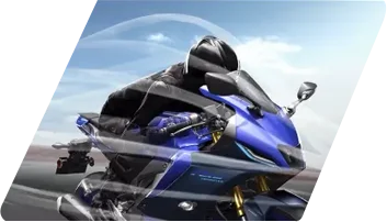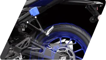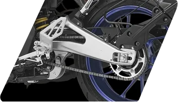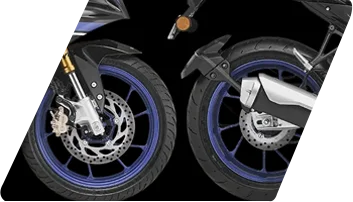 The R15M elevates sporty handling on winding roads with an upside-down front suspension fork featuring 37 mm inner tubes. These forks enhance rigidity and stability during high-speed turns and intense braking.